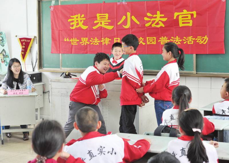 昨天,姑苏区双塔街道网师巷社区组织平直实验小学的孩子演绎校园暴力案件,由“小法官”和“小陪审员”审案,并请律师解析,帮助孩子们树立法律意识。□记者 叶子/文 徐志强/摄