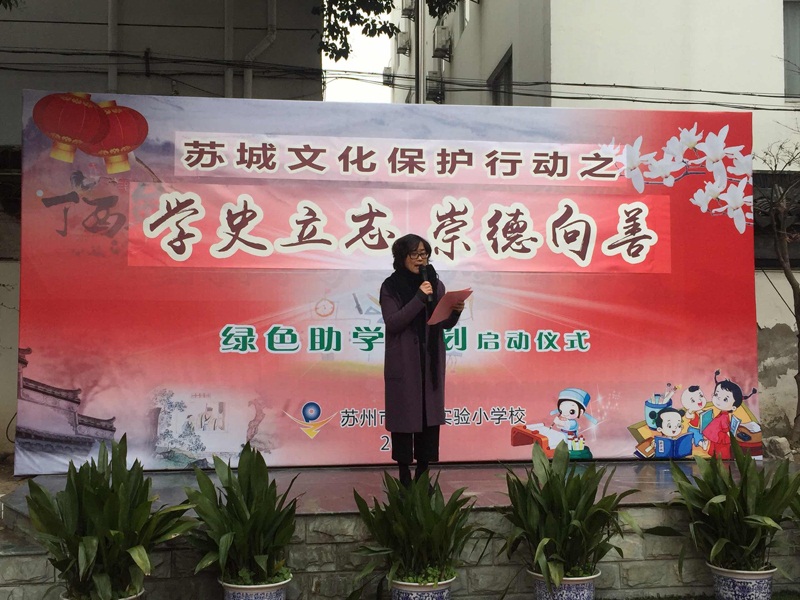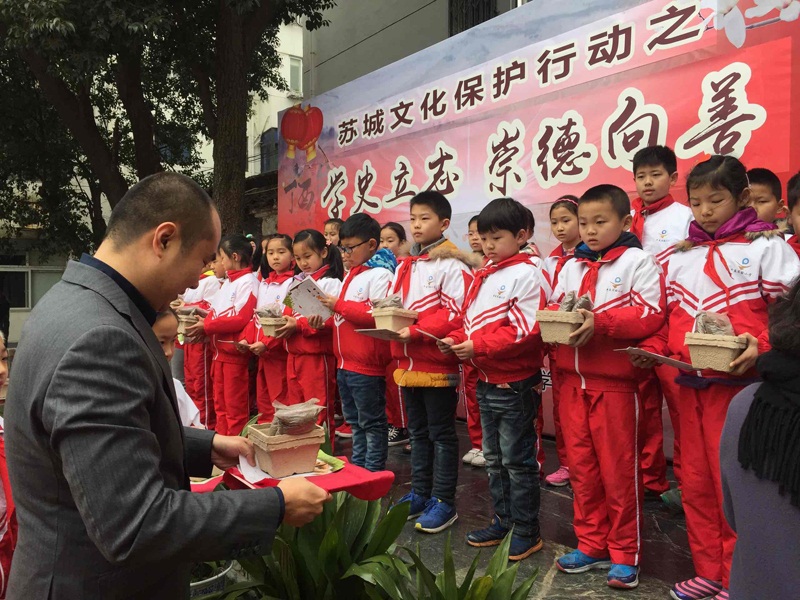 该校的徐校长介绍,2016年苏州市平直实验小学启动了综合实验课程“微旅行”,通过走出校园,了解2500年历史的苏城。她强调:“苏城是需要保护的,借由植树节环境保护为切入点,学校开启了‘绿色助学计划’,通过收集废纸,循环利用资源,身体力行进行环保活动,为苏州古城环境保护贡献自己的力量。”