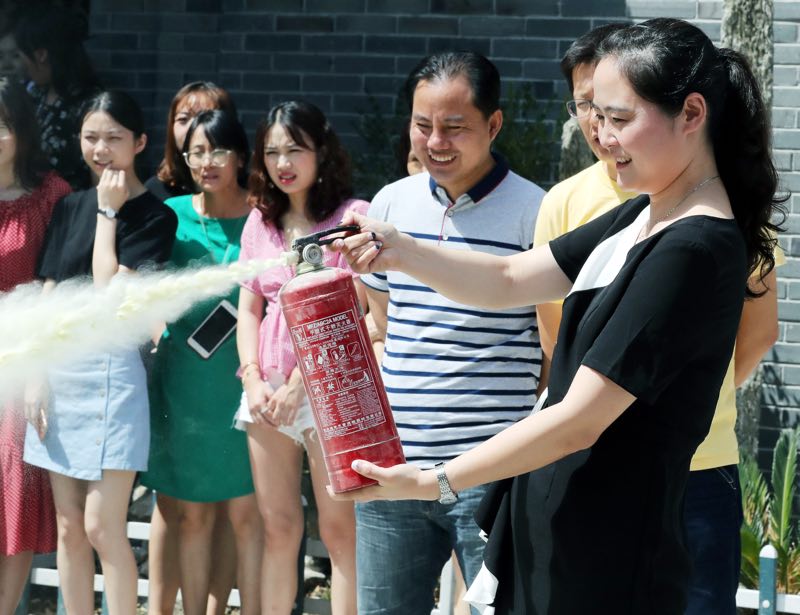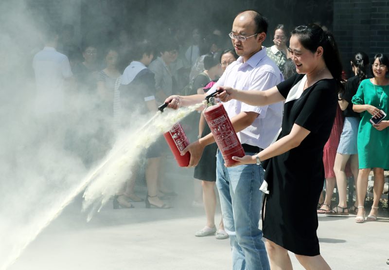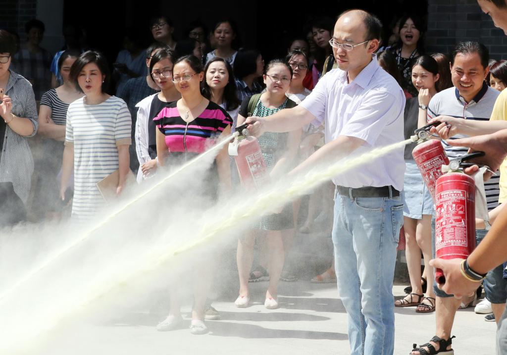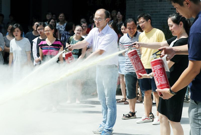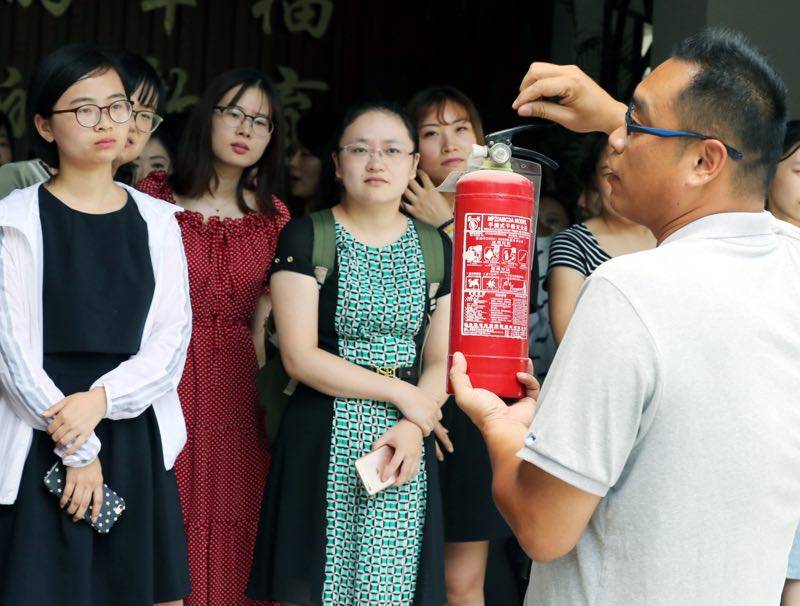 今天(8月31日),万彩网100线路给近百名老师先上新学期第一课,让老师们熟练使用灭火器,增强安全意识。(苏报融媒记者 华雪根 文/摄)