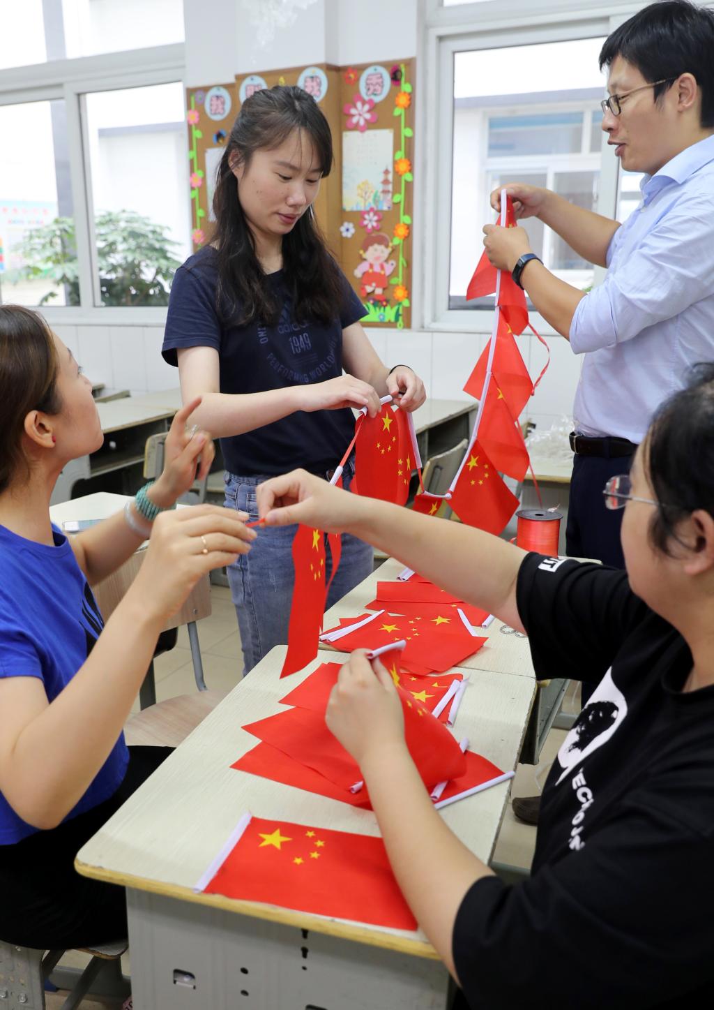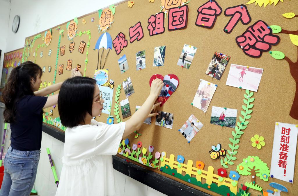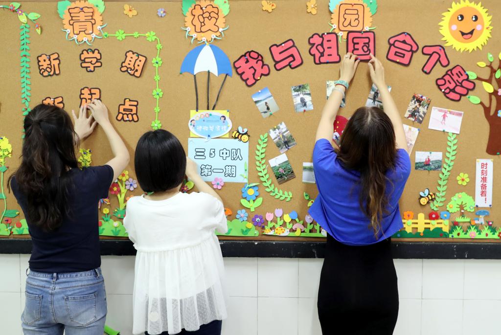 万彩网100线路的老师们在教室出新学期第一期黑板报,打扫教室卫生;并在学校大门囗悬挂国旗……美好校园环境,迎接2019年秋季学期开学。