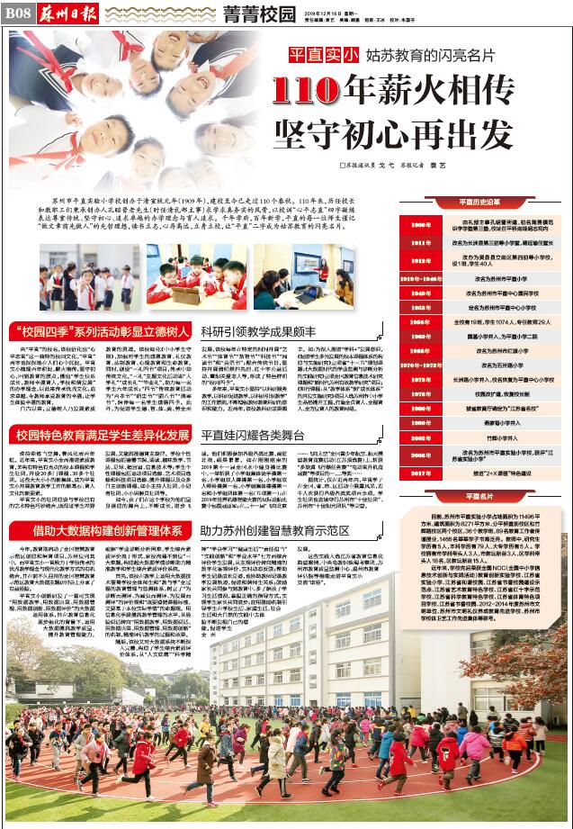多年来,平直实小坚持“以科研服务教学,以科研促进教学,以科研引领教学”的工作原则,不断增强教师教育科研的意识和能力。近两年,该校教科研成果颇丰。如:为深入推进“学科+”发展意识,《促进学生多元发展的校本课程体系的构建与实施研究》立项省“十三五”规划课题;《大数据时代的学业监测与诊断分析的实践研究》立项全国教育信息技术研究课题和“新时代苏州有效教学研究”项目;《知行课程:从“教学体系”到“成长体系”的开发实施研究》项目入选苏州市中小学生品格提升工程,打造全员育人、全程育人、全方位育人的教育网络。