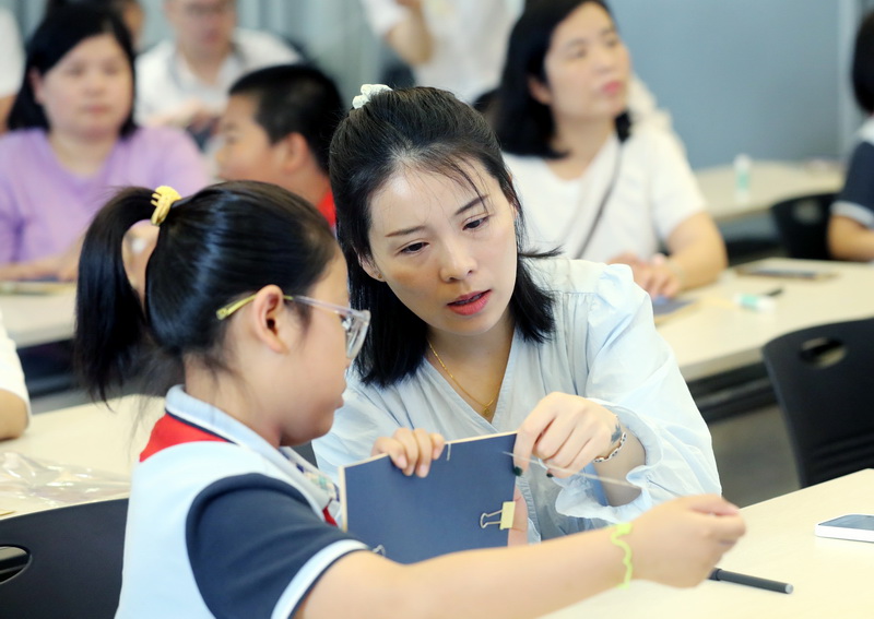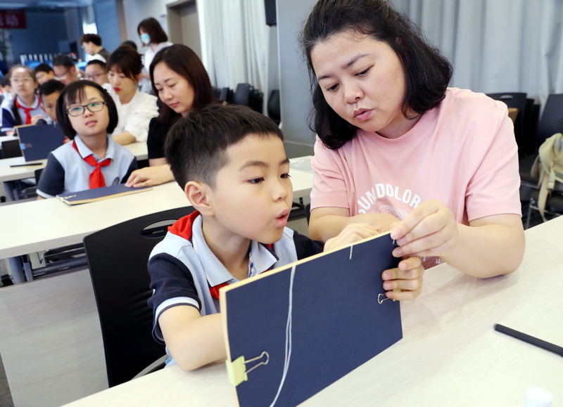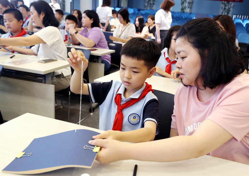 今天(5月31日),苏州图书馆工作人员来到苏州市平直实验小学传授古籍装帧方法。学生和家长们一起齐栏、打洞、捻线、上护叶、上书衣、穿线、断线……制作古籍线装书,领略中华传统文化之美。