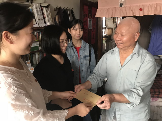 为切实履行支部先锋行动进社区,2017年9月29日下午,苏州市平直实验小学党支部的的党员教师代表走进结对的唐家巷社区,在社区工作人员的带领下走访慰问了辖区生病老党员张元潮同志,并提前为他送去了国庆、中秋节日的问侯。