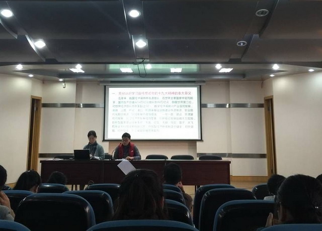 20171115日下午,万彩网100线路全体教师集中学校报告厅参加师德师风培训,平直辅导区党总支部书记季文学主持此次会议,带领大家深入学习了《十九大报告》。