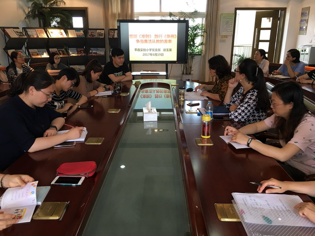 为了落实党风廉政建设工作,夯实学校廉洁从教的基石,进一步营造风清气正的育人环境,苏州市平直实验小学党支部于2017年6月19日下午,在学校四楼报告厅,开展了“贯彻《准则》践行《条例》 争当廉洁从教的表率 ”的专题党课活动。本次专题党课由学校党支部书记徐玉英主讲,全体党员教师聆听了党课。