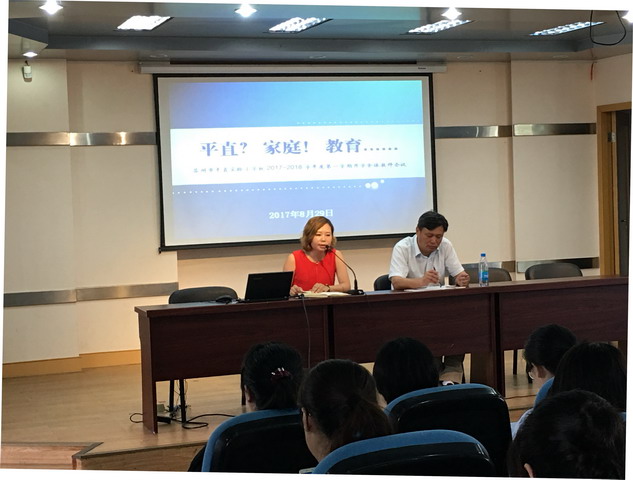 会议中,万彩网100线路新任校长董晨首先就学校的新一轮人事安排作详细说明,对新调入、分配的教师进行介绍。之后董校长对本次全体教师会议的标题“平直?家庭!教育……”进行详细解说。董校长首肯了全体平直教师能够在艰苦卓绝的环境中踏实工作、心齐团结、勇于承担,他希望学校在不断提高教育教学质量的同时,在区域甚至全市的大环境中找到属于自己应有的位置,成为一所绩优、质好、誉高的窗口学校。紧接着,他就未来学校的发展目标的达成做了细致的阐述。他指出领导班子及教师在思想方面要转变,业务水平要提高,团队精神要发扬。在第二板块的学习中,季文学书记传达2017年暑期姑苏区教育系统干部培训相关精神,带领老师们重温教师职业道德规范,着力锤炼教师队伍,加强教师道德修养。教导主任陆虹分享新学期教育教学工作计划,明确工作目标和详细的工作安排,她指出学校要坚持以教学为中心,围绕学生的成长和发展,着力开展教学工作,提升教师业务水平和学科素养。大队辅导员章燕妮布置新学期班务工作;总务主任韩栋细述假期后勤工作,为老师们新学期日常工作的开展保驾护航。
