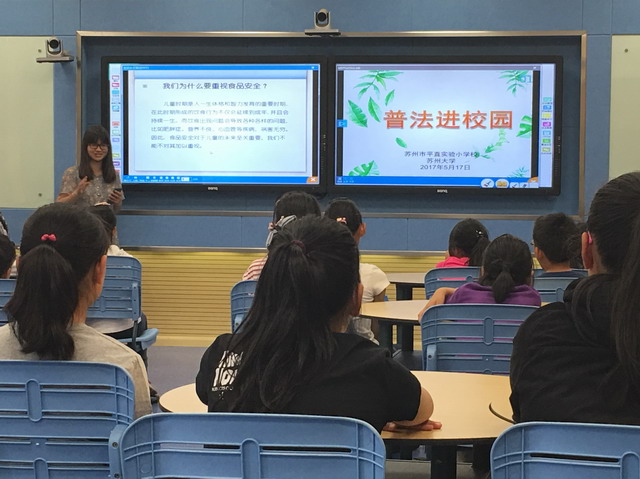 由于小学生涉世未深,普遍存在法律意识淡薄的情况,加之学校周边不良商家众多,垃圾食品又深受小学生喜爱,食品安全问题已成为小学生这一群体中的严重问题。向小学生普及食品安全的相关法律法规是一件重要的工作,提升小学生的法律意识也是刻不容缓的问题。2017年5月17日下午,万彩网100线路联合沧浪亭社区、苏州大学开展了“少年不知‘食’滋味”为主题的普法教育活动。