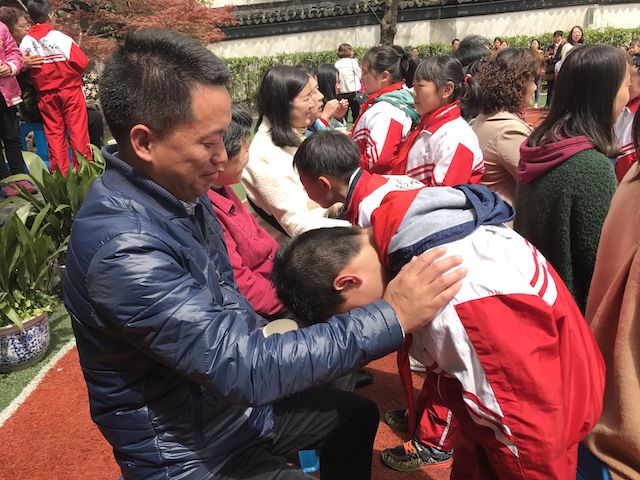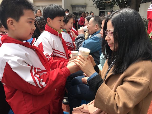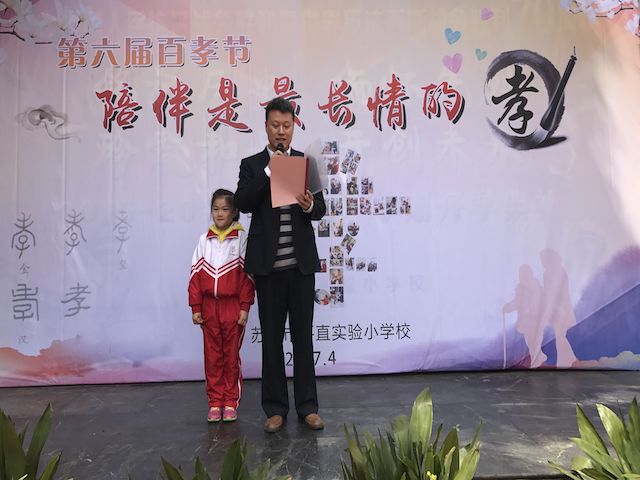 4月10日,平直实验小学全体师生齐聚操场,进行了第六届“百孝节”颁奖典礼。小主持人介绍了参加的家长代表,宣布第六届孝家庭,并请孝家庭获奖者上台代表大家给爸爸妈妈、爷爷奶奶让座,敬茶!