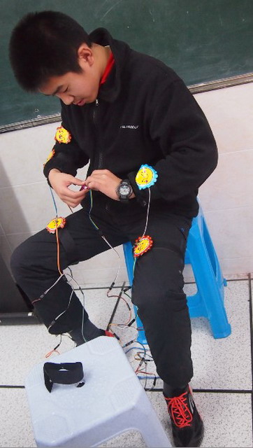 从美观角度出发,小创客们给原来的人体钢琴贴上了向日葵图案。