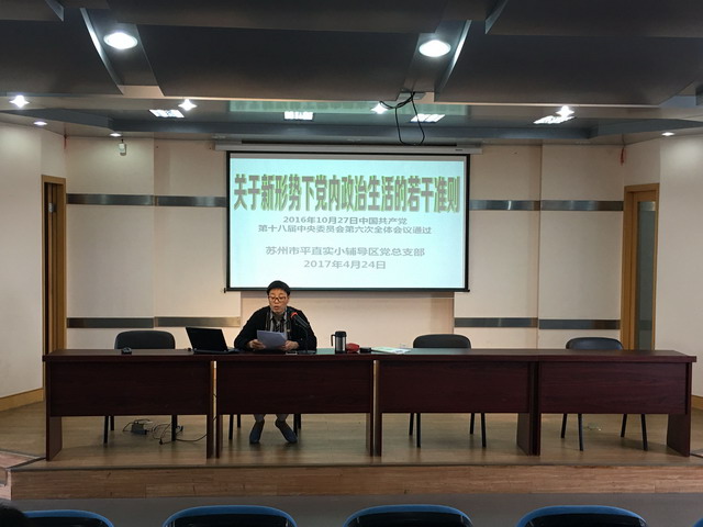 2017年4月24日下午,平直实验小学辅导区全体党员集中平直实小报告厅参加辅导区党员组织生活会,集中学习了《关于新形势下党内政治生活的若干准则》。