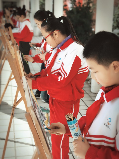 3月14日上午9时许,春光明媚中,苏州市平直实验小学约20名小画家拿着画笔齐聚古雅的校园长廊,手执画笔,参与了“友城绘”江苏省青少年绘画展活动大赛。大赛要求以家乡为主题,题材不限,旨在让江苏省少年与江苏在世界各国的友好省份、友好城市中的青少年通过绘画交流形式增进彼此了解。江苏省广播电视台就此专题对校此次活动进行了专题摄制,我校很荣幸作为代表接受采访。