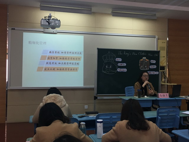 交流活动的第二个板块是由江苏省特级教师我校朱晓芳副校长带来的专题报告《以研促教:共建、共赢、共生》。朱校长通过介绍我校英语组承担的多项课题研究,站在教学科研的高度结合我校英语组教师们的日常教学经验,与大家分享了如何全面提高学生英语核心素养的诸多卓有成效的教学方法。朱校长着重就我校在“小学生英语学习发展性评价研究”这一课题研究过程中,对应新课标的要求,为提升小学生英语听、说、读、写、唱、演、玩的基本能力,发展小学生综合语言运用能力的发展,构建起的评价内容多元化,评价过程动态化,评价主体互动化的“七巧板”评价体系向老师们做了介绍,同时,这也是我校英语教研团队集体智慧的一次展示。