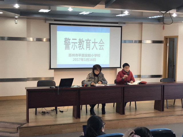 2017年1月16日上午,平直实验小学校在本部四楼报告厅召开全体教师警示教育大会。会议由辅导区党总支书记季文学主持。