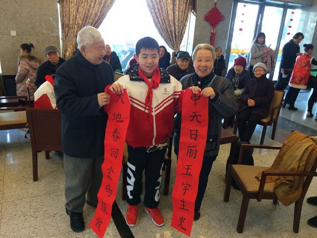 加入一小碗水,不停地搅拌;加入一小勺糖,和豆沙拌匀。揉皮,拌馅,平直娃们和老人们一起,用自己精心挑选的食材,制作着元宵。一个个洁白的小圆团,在孩子们和老人们双手不停揉搓下,像一颗颗晶莹的小珍珠,惹人垂涎三尺。小圆团里包含着满满的馅料,同时也包含了平直娃们对老人们满满的感恩之心。每年开学、放假、逢年过节,平直娃们都会准时来到养老院,看望这些时刻关爱他们的老人,在爷爷奶奶们的身旁听他们讲过去的事情,和爷爷奶奶们一起玩游戏,陪他们读书,陪他们看报,平直娃们深知,百善孝为先,尊老有:孝。