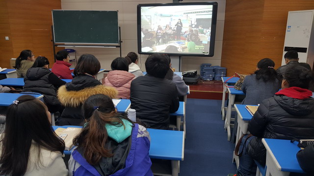 在平直的录播教室里,教师们集中收看了平直实小朱晓芳、三元实小曹陈一、三元三小徐利霞、金阊外国语学校姚可琴四位来自不同学校不同学科优秀教师的先进事迹,分别由洪薇、刘卿、吴等四位老师精彩演讲。四位演讲者从班级管理、关爱学生、师德修养、专业成长等方面,分别对这四位教师的先进事迹进行了生动的诠释。