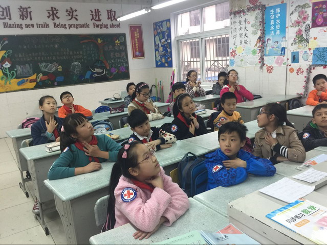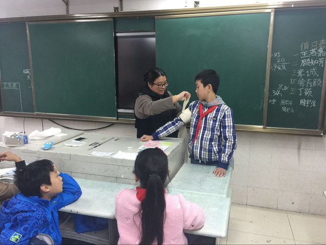 作为省红十字示范校,平直实验小学与苏州市第四人民医院红十字志愿者们合作,开展每月一次的红十字技能培训系列活动。