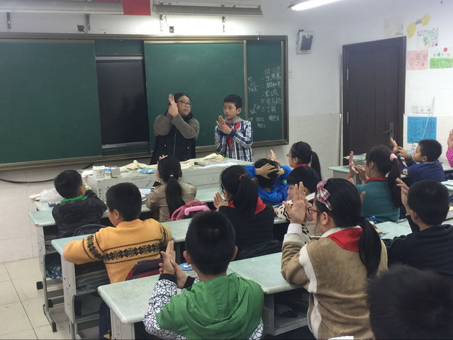 “快、用指压法止血”,“用三角巾包扎”,“这个急救知识我知道,我来答”……11月17日,苏州市平直实验小学五年级全体师生,在班级中开展了红十字急救技能培训活动。