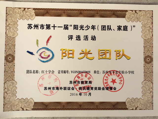 在一次又一次的学习活动中,红十字会员们不断地在成长着,收获着,在苏州市教育局举办的“第十一届阳光少年(团队、家庭)评选活动中”,平直红十字会荣获“阳光团队”称号。在这样一个充满“平等、博爱、互助”精神的大家庭中,平直学子们,懂得了奉献、懂得了感恩,路漫漫其修远兮,不惧困难向前行。