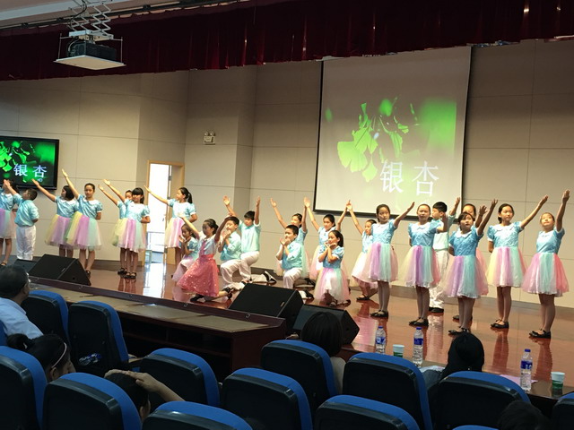 启动仪式前四位平直学子在方蓓老师的指导下,当场为大家书写并展示了自己的书法作品。“春风把大地吹醒,春雨让土地滋润,山坡下的种植园里,开始翻土,准备春播育苗......”会场上传来了优美的朗诵声,这是二十多个平直实验小学五年级的学生在沈徐苗老师的带领下在台上诵读诗歌《银杏》。他们的表演精神饱满,声音委婉动听,动作优美自然,展现了银杏的康健俊秀,淡雅脱俗,孩子们的声声吟诵中流露出的是银杏古雅玲珑的冠叶,它那历久弥新的古韵,它那灿烂如阳的微笑,不由让人遐想无限,