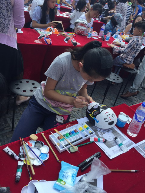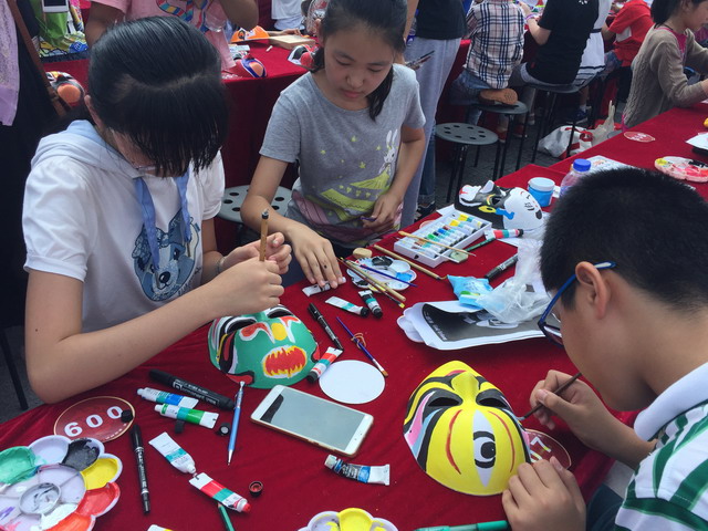 我校参加了在园区李公堤举行的苏州市青少年国粹展示活动“绘中国美 展国粹韵”百人脸谱绘制大赛。在百人绘制脸谱的比赛现场,苏州平直实验小学的学生们在炎热的太阳下,挥洒汗水认真绘画的脸庞,让人深深感动。看着他们一笔一划细细描绘出不同曲艺中人物的喜怒哀乐,真为他们自豪。他们专注的为面具添上丰富的色彩,就像在给传统文化加入了更多新鲜的血液。