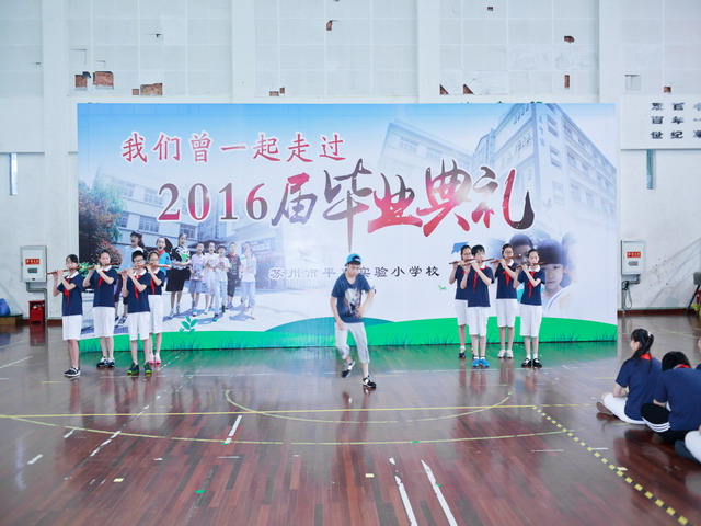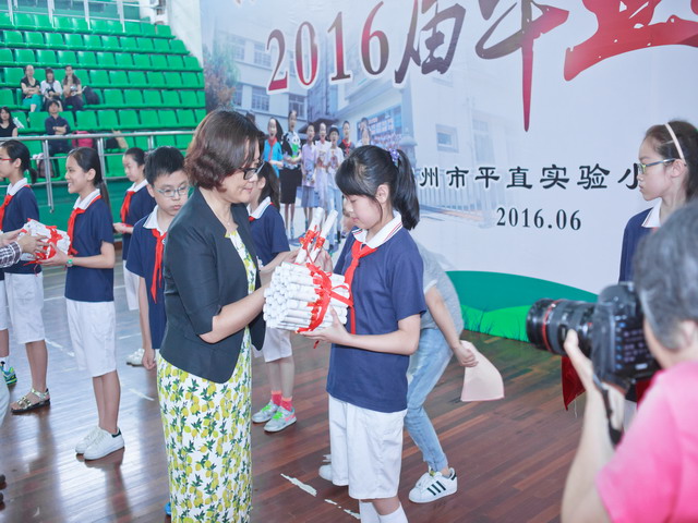 作为百年老校,学校一直坚持将弘扬和传承传统文化作为学校德育教育的重要部分,六年级的“毕业礼”与“入学礼”、“成长礼”、百孝节、昭忠节、消寒节和腊八儒雅节组成了学校少先队品牌活动“三礼四节”,获姑苏区优秀德育案例一等奖。今年,学校坚守传统,第一篇章以“祭孔”为主题,行“毕业三礼”,感恩圣贤,给予我们以智慧的财富。活动中,六(6)班汤俊豪同学的爸爸作为家长代表在寄予中再次带领同学们重温“心平志直”的校训解读,他希望同学们将感恩铭记心头,展翅高飞之际心系母校、心怀师恩。学校陆教导在期待的眼神中郑重宣布2016届毕业生名单。孩子们在徐校长和季书记的手中幸福满满地接过毕业证书,在薄薄的一纸中,得到一份沉甸甸的力量——那是母校给予孩子们的肯定和祝福。六(2)班胡安同同学代表全体毕业生向六年级老师献花致礼,同学们在临行之际,还给送上了一份惊喜——一个书架鼓励一代又一代学子博览全书,博采众长,涉猎广泛,做浸润书香的好少年;一套国学经典诵读读本,希望平直学子能一直坚持传承经典,继承美德,做儒雅博学的平直人。徐校长接过厚礼,和孩子们回顾了六年来走过的点点滴滴,寄望大家意气风发,不悔青春!十年,二十年,母校真诚地敞开怀抱,欢迎大家常回家看看。一曲《青春修炼手册》将孩子们热情与活力推向了高潮,边唱边舞,小伙伴们的笛子伴奏展现的是近年来他们的竹笛艺术教育成果,特别的爱在这个特别的日子里献给敬献给最亲爱的母校、最敬爱的师长以及最钟爱的伙伴。