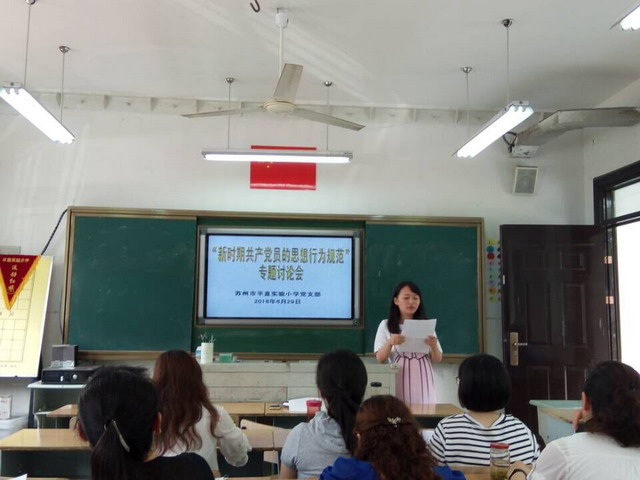 按照姑苏区教体局党委的要求,苏州市平直实验小学党支部于6月29日下午,开展了一次“两学一做”专题讨论会,本次专题讨论的主题是“新时期共产党员的思想行为规范”。会议由辅导区党总支书记季文学主持,全体党员教师参加了此次专题讨论会。