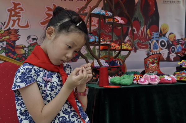 2014年9月27日上午,我校参加了苏州市教育局举办的2014年“花季杯”苏州市青少年国粹系列的 展示活动。本次活动我校以“虎头鞋”为主题,进行布置设计。让每一个参观者都仿佛置身在一个鞋的海洋——这里的鞋子色彩缤纷,千姿百态,多么富有趣味,让每一个参观者都流连忘返。