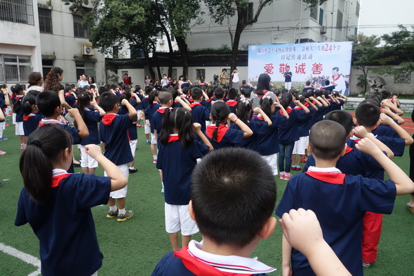活动中,全校师生在国旗下宣誓,“培育社会主义核心价值观,从娃娃抓起,我们小学生实践社会主义核心价值观。要勤学、修性、明辨,笃实,做一个对社会主义国家建设有贡献的人。”各年级在对应的标牌下,齐说社会主义价值观的三个精神层面内容。孩子一遍又一遍地大声念,一句又一句,字字入心。当下,社会主义主流价值观的深入践行,是全社会的一大行动,“合抱之木,始于毫末”,孩子们,作为社会的新生代力量,是国家的希望,民族的未来,从小做起,认真学,认真行,爱国守法、明礼诚信、友善讲仁,在学习和生活中,动动小脑,动动小手,将民族兴旺的大任幻化为点点滴滴的行动,加以落实,这是我们当下能为国家和社会所尽的应有责任。紧接着,一年级的小朋友们在正副班主任的带领下,在老生们的欢迎鼓掌声中,热切地呼喊着“我爱平直,我爱学校”,兴高采烈地来到操场,举行他们进入平直以来需经历的第一个传统礼仪——“入学礼”暨“开笔礼”,接受全校师生给予他们的开学第一课。活动中,大队辅导员亲自讲解了开学第一课的内容,孩子们听得津津有味,小眼睛只放光芒。一册新入手的《玉兰经》是孩子们进入学校以来得到的第一份礼物,薄薄的书页中,承载着大大的道理,一阵秋风掠过,阵阵书香溢满校园。在行“三礼”的环节中,孩子们端端正正地向校领导一行爱校礼,向一年级的班主任们二行尊师礼,向同窗的学长学姐们三行有爱礼,深深的鞠躬,每一礼表达的是满满的感激。“入学礼”中,最数孩子们期待的莫过于开笔仪式,徐校长亲自走上台为新生们削起一支支铅笔,孩子们效仿校长的一举一动,亲自实践,开启人生中的慎重一课,卷卷的笔削中,有老师们绵绵的爱,有爸爸妈妈满满的期待,小朋友们认认真真地手捧铅笔,励志好好学习,天天向上。