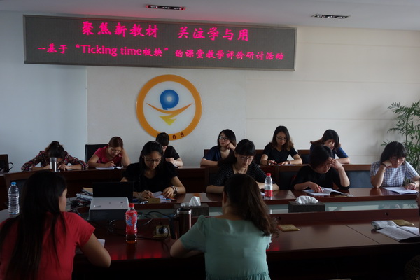 课后,参与活动的平直共同体领导与听课老师们齐聚一堂,展开了说课与评课活动。老师们畅所欲言,分享精彩的地方,共同探讨结合新教材中每单元的Ticking Time板块设计,将该板块的设计理念辐射到每一课时的日常教学中,让其具有可操作性,尝试英语阅读能力提高的评价新方法。
