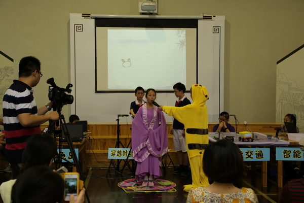 2014年6月3日,平直实验小学师生参加了苏州市凌秋虹名师工作室观摩展示活动。平直是一所百年老校,学校有笛子、诵读、绢宫扇、舞蹈等校本课程,传承着传统文化;同时又是苏州市的一所艺术特色学校,学校的艺术课程丰富,同学们发展全面,因此学校想到将信息与艺术交融,用Scratch编写校园艺术。