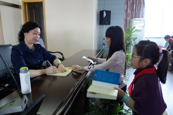 为了让孩子们容易理解,王老师用童趣的语言,用自己身边的经历,向我们娓娓道来她的写作秘诀,期间不时与孩子互动,由孩子们自己体悟老师的写作法宝,不仅把气氛推向了高潮,更让孩子们深刻理解了如何写作。王老师用自己真实的例子,引导学生认识到做个有心人的重要性。我们不仅要走进大自然,用心倾听身边的动植物们的“语言”,还要关注生活,随时记录下身边有意思的事情,这会让我们积累丰富的素材,为写作打下坚实的基础。其次,我们要插上想象的翅膀,奇思妙想会使文章充满灵气,有个性,让文章脱颖而出。好的文章,能在潜移默化中感染读者,以情动人的文章则更美,所以只有我们投入了感情,才能收获情感的共鸣。同学们积极参与,大胆发表自己的意见,这令王老师留下了深刻的印象。王老师根据同学们精彩的发言,精练概括出了写作三法宝:观察,想象和情感,同学们受益匪浅,了解了写作要领,更觉得与“大作家”有了近距离的零接触,更是积极踊跃向王老师提问,想要对王老师有进一步的了解。在讲座的尾声,孩子们更是依依不舍,纷纷索要王老师的签名,留住这次美丽的“邂逅”。