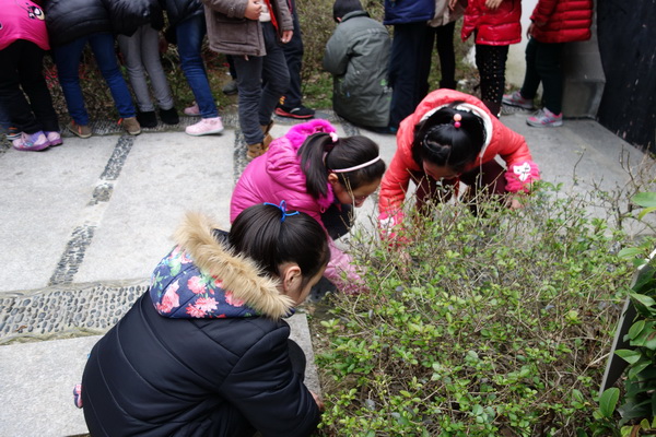 孩子们对于“惊蛰”的了解还不能仅仅局限在课堂里,了解完“惊蛰”的他们又迫不及待地跟着科学老师来到了课堂外,在解冻的泥土里,孩子们找到了翻土的蚯蚓;在拂面的春风中,孩子们找到了在花蕾上忙碌的蜜蜂;在蒙蒙的细雨中,孩子们看到了柳丝摇曳一片新绿……小花园里、林荫道上、大操场中处处留下了孩子们寻找昆虫的足迹。
