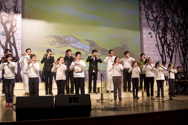 2014年1月25日,是江苏省音乐家协会竹笛学会江苏首家教学基地苏州市平直实验小学艺术教育收获的日子。由平直实验小学承办、中国竹笛专业委员会会长、著名竹笛艺术大师张维良教学基地胥口小学友情参与的2014竹笛艺术特色展演及汇报音乐会在苏州市第一中学拉开了帷幕。