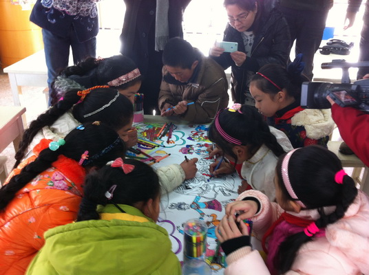 虽然相处的时间不长,但孩子们的热情,一下子拉近了彼此间的距离。两地孩子们还携起手来,共绘民族团结图,图中凝结了两地学子深深的友谊。