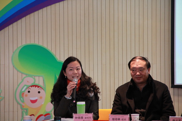 苏州市平直实验小学徐玉英校长向大家汇报了组长校一年来的工作情况,并对下一轮的组长校——杭州采荷一小的下阶段工作设想提出了宝贵的建议。徐玉英校长希望四校能针对各自的发展瓶颈找到新教育的途径,在新媒体支撑下进行更多的教学探讨。