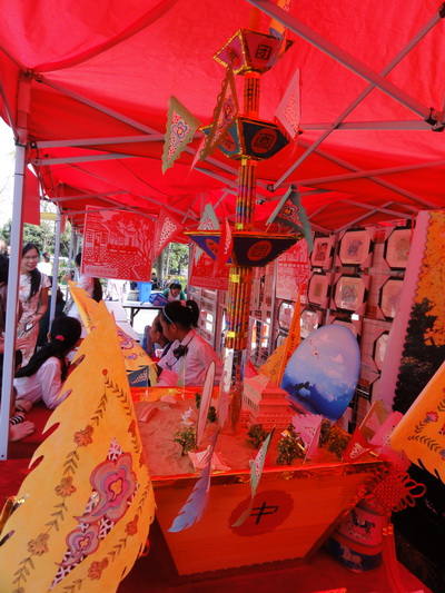 这次的参赛作品——“香斗”是由美术张宁老师设计并制作的,在学校老师和学生们的配合下,历经10多天才完成。“香斗”是中秋佳节使用的祭奠品。中秋佳节,斋月宫,期望月儿圆,人团圆。