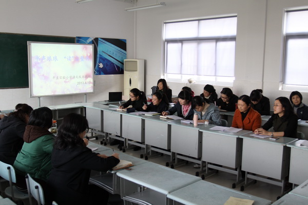 2013年4月10日星期三,按照惯例,我校全体语文老师齐聚多媒体教室,参与每周一次的语文教研活动。本次的语文教研活动以经典诵读为主题展开学习、讨论。雅言传承文明,经典浸润人生,我校是江苏省经典诵读基地,一直以来,“经典诵读活动”在我校的传承、延续,成为了语文教育教学中不可或缺的一部分。这一次的教研活动便是一次阶段性的总结和探索。而这次教研活动,也更因为教师发展中心的惠兰副主任、包迎艳老师和李琴老师三位专家的“润教”指导,而更显激情,更具价值。