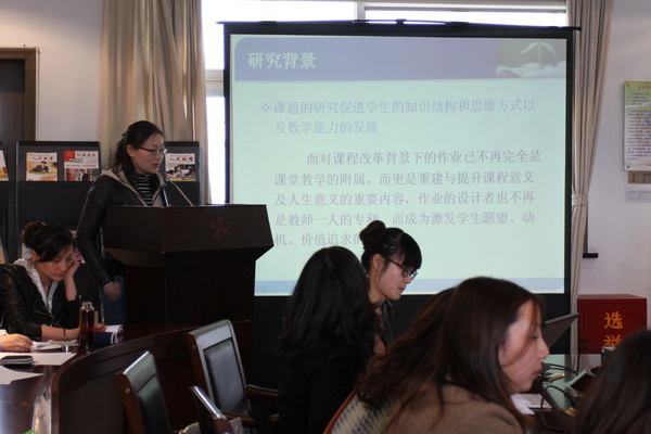 会上,吴婕教师就《以学生为主体的小学自主性数学作业的研究》课题向专家、领导们作了中期汇报。专家们首先肯定了本课题的实践价值,并对吴老师所作的课题中期汇报给予了很高的评价,同时围绕课题的概念界定、研究目标设定、研究内容设计和科研工作所取得的成效等与课题负责人做了热烈的互动交流。