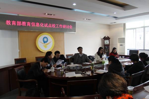 会上,首先由我校朱晓芳副校长对我校实施教育部信息化试点校项目的前期调研、整体方案以及建设需求进行了汇报交流。我校设想在试点校建设中通过构建“一对一数字化学习”环境,探索在信息技术环境下的课堂教学改革新模式和基于网络环境下学生个性化学习新模式,并通过“一对一”数字化学习推进网络协作教研。学校将本着“总体规划、分步实施、关注重点、解决问题”的思路,积极开展“一对一”数字化建设,为打造一支有较高信息素养的教师队伍,实现教育信息的交互、共享、开放、协作、高效,全面提升学校信息化水平奠定基础。