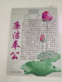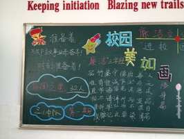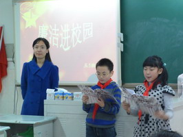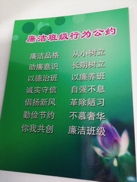 教室里,每一个班级黑板报上开辟了廉洁角——“廉洁童谣”、“廉洁格言”引导孩子明白那些看似深奥的道理。下课后,孩子们读得津津有味,有的三三两两念着廉洁童谣,有的兴致勃勃背着廉洁格言,小小的心灵都受到了廉洁的熏陶。