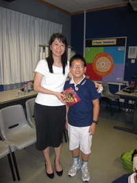 我跟着星星去上课。在课堂上,自然要自我介绍了(用英语,生怕人家听不懂中文),艰难地从嘴里挤出几句英文。看到下面小观众们痛苦的表情,可以猜到心中的想法:求求你,还是说中文吧!中文还是听得懂的。确实,这难为他们了,我自己叽里呱啦说了些啥,自己都不知道,更何况他们呢?嘿嘿!(难为情ING)