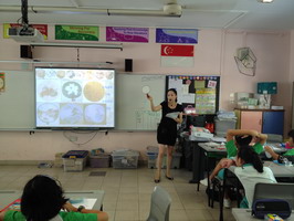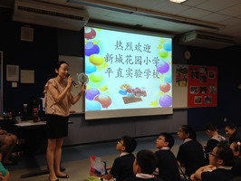 参观完校园后,我们和其他同学一齐走进了咏芳她们的教室进行随堂听课。“叮铃铃!”上课了,我们不用等老师说就早早地端坐了。新加坡老师上的课十分生动,所以我们大家听课十分认真。开始上华文课了,老师突发奇想地让我们来自中国的小朋友当新加坡小朋友的老师,教他们朗读课文。毕竟中文是我们的母语,比起新加坡小朋友来我们的中文水平还是挺可以的。不过他们的英语水平比我们强多了,除了华文其余的课都是用英语上课。