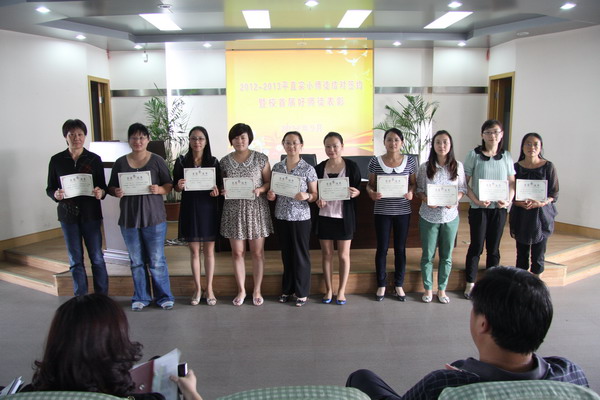活动中,为了感谢默默为学校发展作出贡献的师徒们,激励老师们在今后的传帮带工作中作出更大的成绩,学校特设了“好师徒”的评选奖项。校领导为获得首届苏州市平直实验小学“好师徒”的老师陈晓军——董俊、谢新林——郭情吉、朱丽英——章燕妮、居利英——吴婕、薛玉健——李俊霞颁发了荣誉证书。新跟老,老带新,一批批的新手站稳了讲台,又站上了教学竞技的大舞台,成长为了新一轮的老手……传教帮带让我校的教学水平即便在频繁的教师流动潮中仍稳固地处在区域的高度。交流大会上,好师徒代表朱丽英——章燕妮师徒走上讲台与大家分享了她俩一年来彼此之间在教学上的成长与收获,在生活上的关心与勉励,情真意切,用他们的实际行动诠释着师徒结对的意义。接着,赵校长宣读了《2012——2013学年度平直实验小学师徒结对名单》及《平直实小师徒结对具体工作要求》。