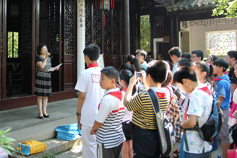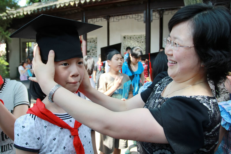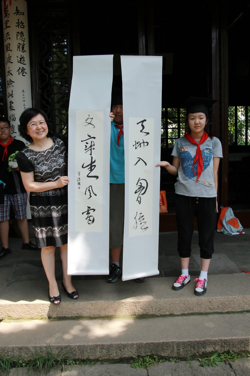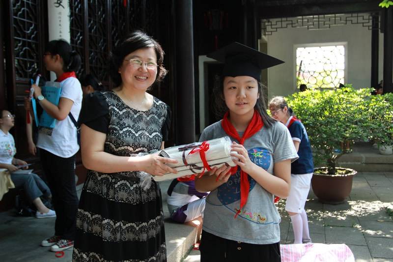 活动中,赵校长代表学校领导向毕业班的孩子们致以亲切的祝福,她希望孩子们能在勿忘童真之余“扬帆起航”,展望新的人生与未来。看着孩子们那一张张稚气未脱而已略显成熟的脸蛋,毕业班的老师们欣慰了,在学生的一曲《感恩母校,感谢老师》的毕业祝词中,在沧浪亭阴阴古木洒下的些许清凉里,他们醉了……洪老师的一番肺腑之言代表了毕业班所有老师的心声,教师的成功不求名利,但求学子们的“超越”。孩子们以一幅幅经典的书画作品回馈了母校六年来的培育和付出,玉兰花的种子将随着这火热的夏风飞向苏城的各个角落,播下一片光明与希望。六年级1班毕业生陆心怡的妈妈代表了毕业班全体家长发言,她感谢学校对孩子六年来的培养,她感恩老师对孩子六年来的付出,她更感念今天学校会以这样的形式留给孩子们一个毕生难忘的毕业典礼。六年的小学生活今天就结束了。这既是一个句号,也是我们人生途中的一个逗号。在这人生的转叉口吴禧辰同学将全体毕业生的心声一一道来,他回顾了六年来朝夕相处的那些日子,他定下了当硕果满枝的季节,我们再相聚母校的美丽约定。同窗六年的孩子们即将分离,彼此间的恋恋不舍,尽在沧浪亭五百贤祠前化作了一张张珍贵的相片。