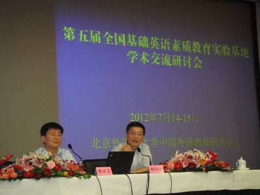 2012年7月14至16日,由北京外国语大学中国外语教育研究中心主办的“第五届全国基础英语素质教育实验基地学术交流研讨会”在京成功举办。北京外国语大学副校长金莉教授、北京外国语大学中国外语教育研究中心原主任刘润清教授、北京外国语大学外语言研究所副所长韩宝成教授、北京外国语大学语言教育评测中心副主任霍庆文教授以及全国多所实验基地的多名学校领导和教师齐聚国家行政学院会议中心,就我国基础英语素质教育的有关问题展开深入交流和研讨。