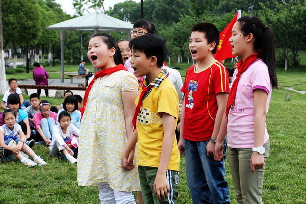 一大早,平直实小五年级全体师生走出课堂、走进自然,来到了桐泾公园。六月的大自然百花齐放、绿树成荫。一到公园,同学们围坐在一起,节目在五(1)班《左手右手》的歌舞声中拉开帷幕,孩子们通过歌声传达了自己内心的喜悦,他们通过舞蹈来欢庆自己的节日,许多节目设计得美仑美奂,同学们也将欢乐的心情表现得淋漓尽致。