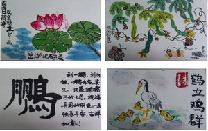 市画信活动是我们历年都参加的美术特色活动之一,学校在历届画信活动中早就形成了自己的艺术特色,全校学生参与面非常广,积极性相当高,作品的品质也越来越佳。看,这次同学们用笔墨在明信片上向日本小朋友介绍了自己的名字中一、二个字的含义和来源;介绍了自己家乡人间天堂的美;介绍了中国成语、谚语、俗语的丰富性;还画出了心中对两国小朋友友好相处往来的美好愿望,笔笔挥洒出自己非凡的美术功底,展现我校学生高超的绘画技能技巧。