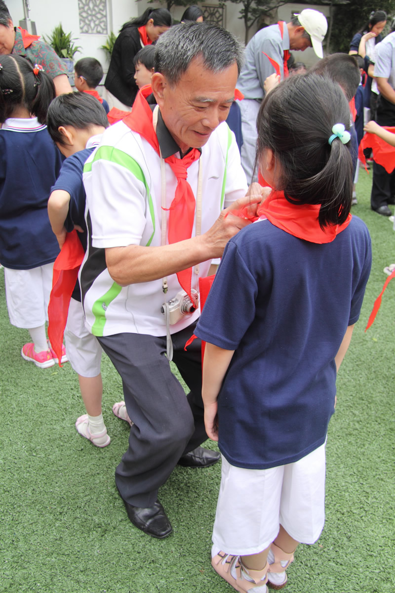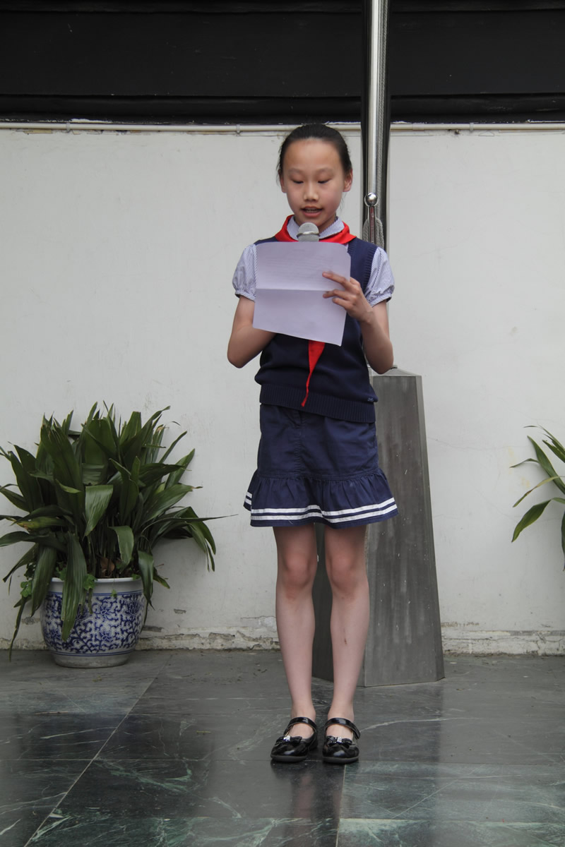 一曲嘹亮的队歌,拉开了活动的序幕,准队员们认真听取了大队辅导员方老师宣读的新队员名单。队员们心潮澎湃、激动万分。队旗迎风招展,在大队长领誓下,随着庄严的宣誓新一批少先队员在党员家长、老师,团员教师的受戴下佩戴上了鲜艳的红领巾,为少先队又注入了新鲜血液。活动上平直实验小学的黄裕鸿副校长发表了讲话,阐明了加入少先队的荣耀与职责,他要求孩子们要正视胸前鲜艳的红领巾,要更加严格要求自己的言行举止。黄校长动情地向孩子们介绍了87年前的一场反帝爱国运动——五卅运动,她希望孩子们从戴上红领巾的这一天起,熟知中华历史,担起民族大任。