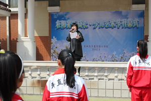 活动一开始,主持人就向全校师生宣布了一个喜讯:英语情景剧《红井》获得了第四届童心奥斯卡英语情景剧银奖,最佳指导奖,最佳剧本奖三项大奖。学校领导为演员代表及辛勤指导的老师们颁发了奖项,全校师生以热烈的掌声向他们表示祝贺。在总校杨书记、分校赵校长的一声令下,2012年平直少儿艺术节正式开幕,孩子们兴奋地举起右手,大声地呼喊出本次艺术节的口号:放飞梦想、展我风采,我秀我精彩。开幕式上徐校长致词:希望学生们勇敢的展现自己的风采,放飞自己的梦想,用心感受艺术,用行动实践艺术,把握这一年一次的机会,让艺术之花开遍平直的校园,更让艺术之花开遍学生的心灵,伴我们一生!最后,在轻快的小组唱中,开幕式落下了帷幕。