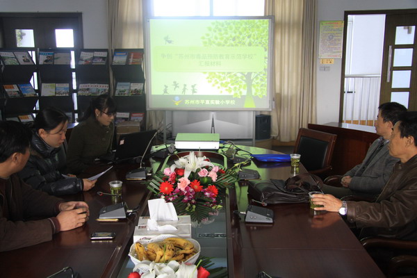 12月2日下午,市禁毒办、市教育局、区禁毒办领导一行四人莅临我校,对我校创建“苏州市毒品预防教育示范学校”工作进行检查指导。